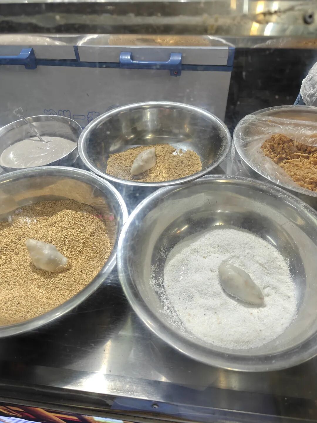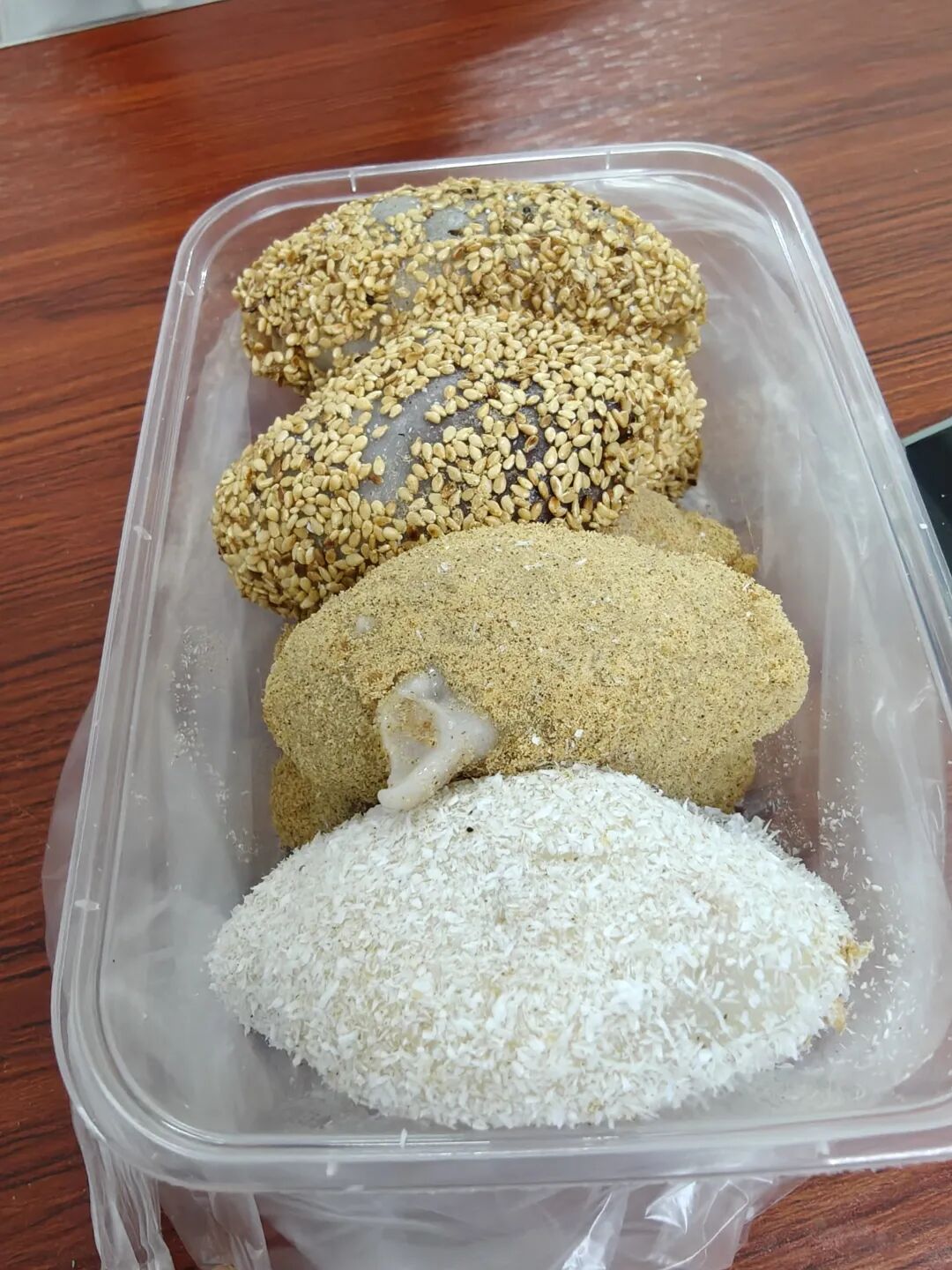 每种口味要了一个,是好吃的,里面会包脆脆的炸物(很像煎饼里夹薄脆),但是在糯食宇宙里来说有点普通。