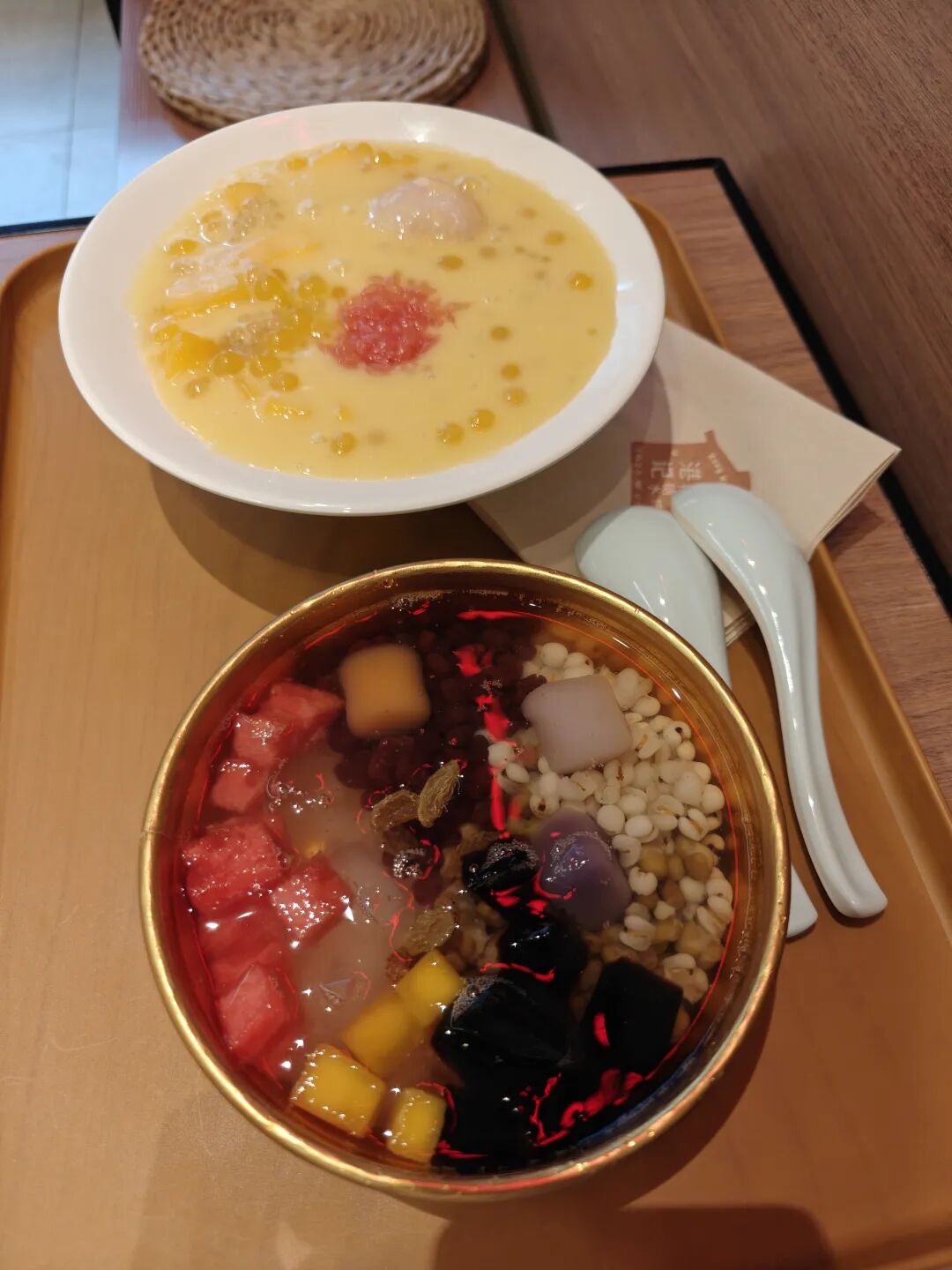 两人分了个木糠蛋糕,这个甜品形式难理解,人没有必要食用木屑吧。